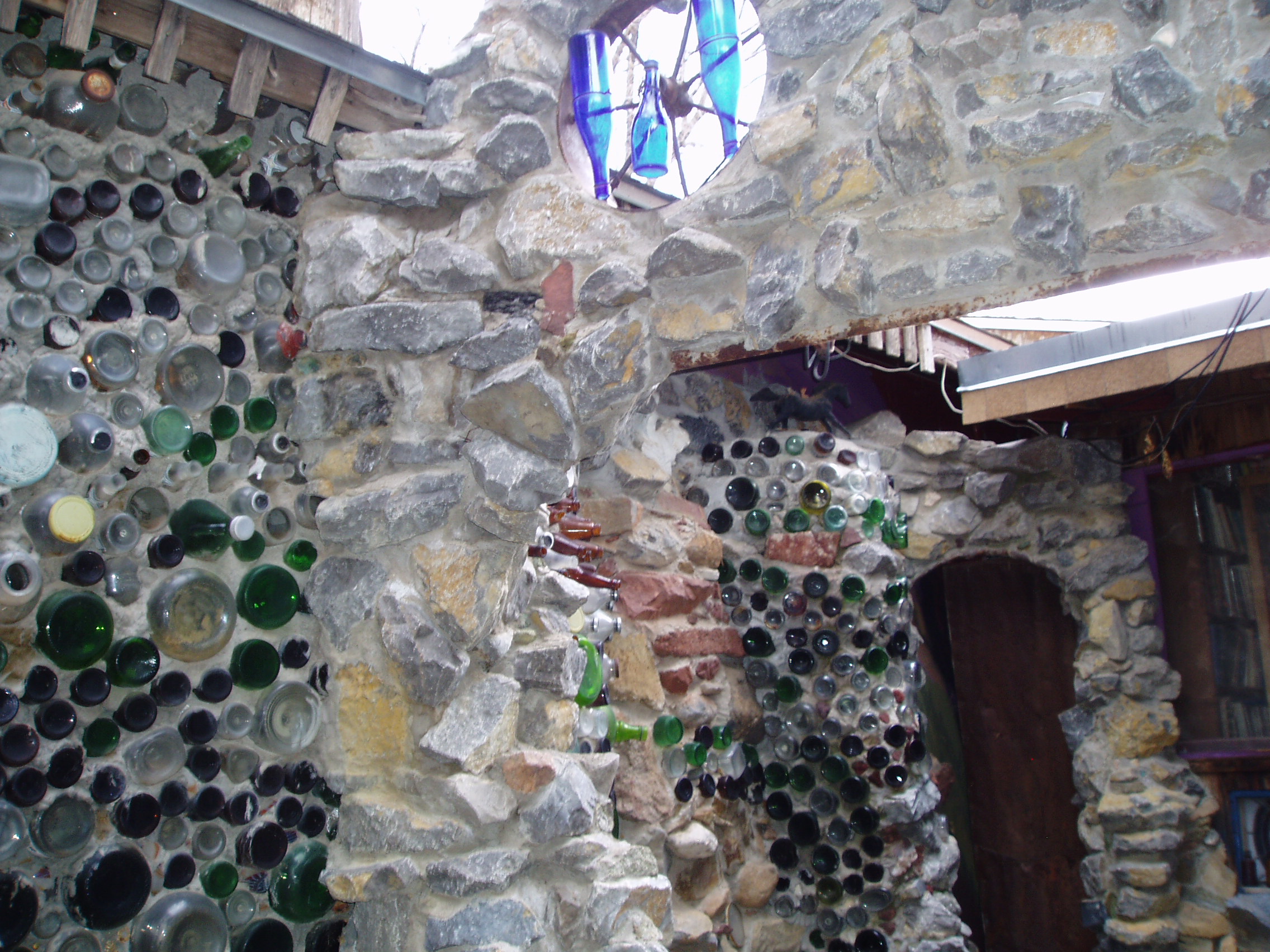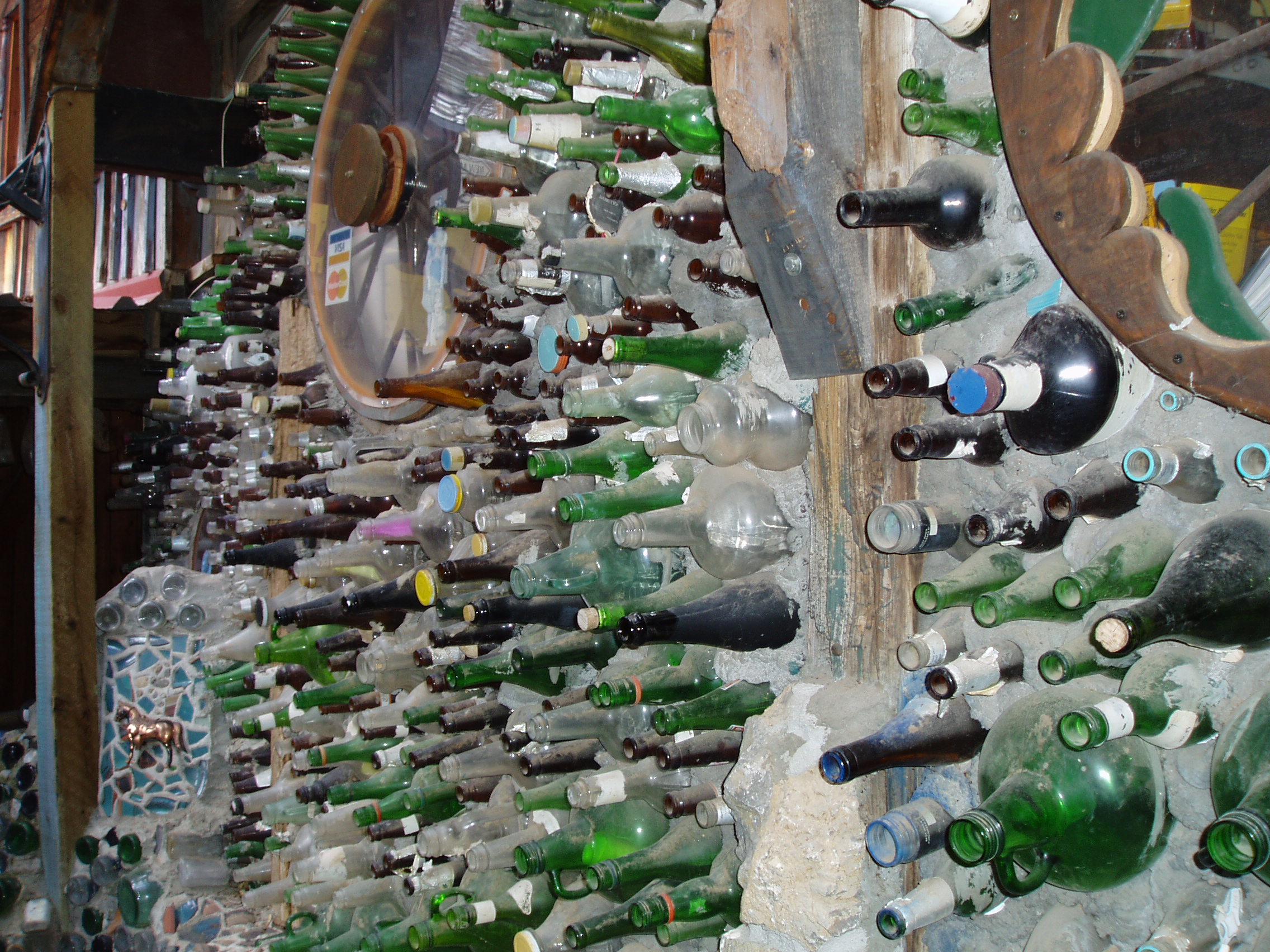 Oh, there is so much to see! The walls made of glass bottles – more than 55,000 – and spotted with inspiring sayings that can’t help but uplift.