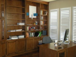 I considered just posting this picture because my office looks so clean! But . . . this was about two days after my bookshelves were built. The barren shelves are all packed with books now.