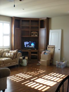The photo I took tonight of my television didn’t turn out, but this is the entertainment center right after it was built . . . it now has a bigger tv (that I got from my husband for my last birthday) and there are blankets and pillows all over the floor from when the kids last watched a movie . . .