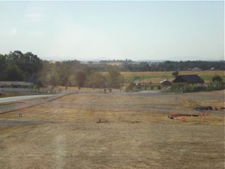 I don’t have that view anymore (it was brown in this picture–taken in August of 2008–but in winter and spring it’s lovely.) Now I look at a house and their roof and driveway. Fortunately, they’re lower than me and I can still see the covered bridge. Not that I look out my window much.