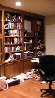 So sorry about that earthquake you experienced in your office…what, that's not…? Oh…well, pardon me, then. But that's exactly how my office would look if I in fact had an office. The good thing about writing in cafes is that someone comes in and throws everything away when you leave.
