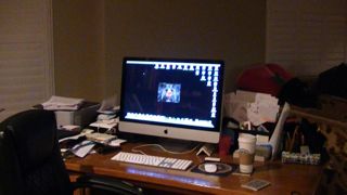 I am not a neat person. In fact, I’m rather a slob. I’ve always been this way–ask my mom (she might even visit the blog now that I finally set up the computer I gave her for Christmas . . . ) and I’m 40. I’m not going to change. I had some idiotic grandiose idea that I was going to clean up the mess surrounding my desk before I posted this blog . . . but what was I thinking? So my office looks more like this now: