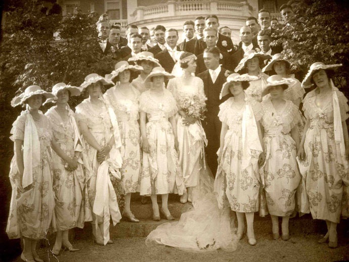 (Grandmama is third from left, front row. This was taken at Great-Grandmother Read’s house in Purchase. The bride is Carol Read, Grandaddy’s sister. She’s marrying Archilbald McIlwaine, another WWI Naval Aviator who was part of the “Millionaire’s Unit” of Yalies, along with Great-Uncle Curtis. Click here for the archived wedding announcement in the NY Times, if you’d like to know what the bride, bridesmaids, and maid of honor were wearing. Apparently there were 600 guest, many of whom “arrived by special train from New York to White Plains, motoring from there to Hill Crest.”