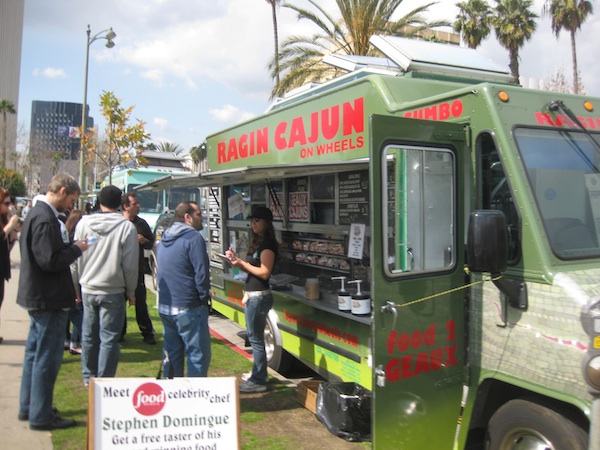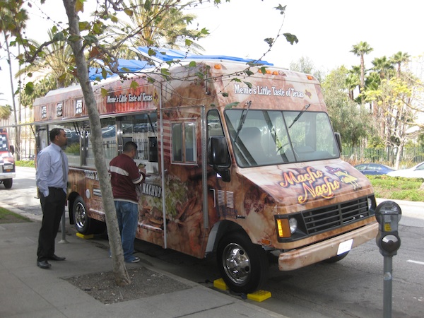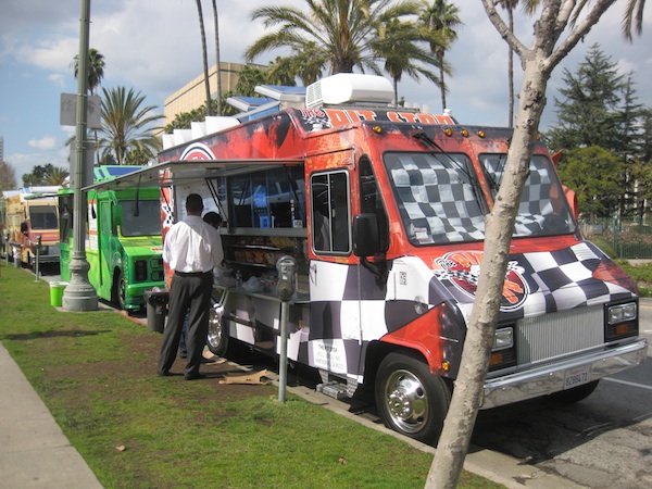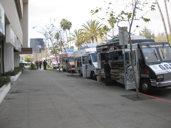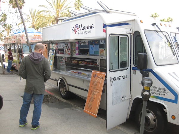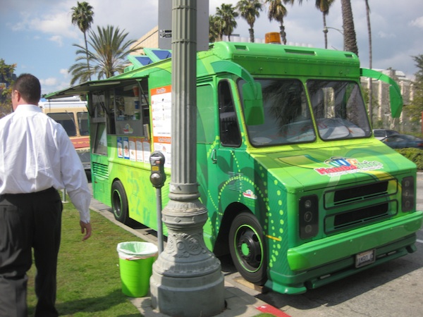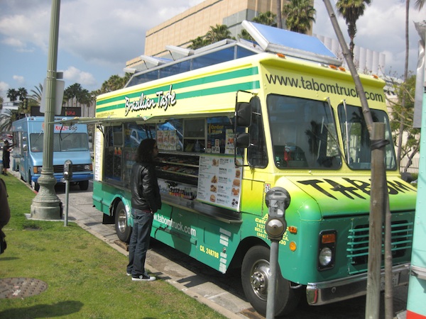 I first encounter this when visiting my friend Bill Cameron in Portland, Oregon, a couple of summers ago. There was a place in town where every night five or so lunch truck would take over a parking lot and serve up chow. But these weren’t the hamburgers and slop type of trucks. Each served it’s own brand of specialty food. I can’t remember the choices from that night, but I do remember wishing the phenomena would hit L.A.