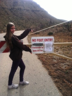 My holiday present to the kids this year was a trip to Sitting Bull Falls in southern NM. We hopped into the car on Friday and drove more than 360 miles — through Socorro, San Antonio, Carrizozo, Roswell, Artesia — all the way to Carlsbad, but it was too late to try to get to the falls. We stayed in Artesia and headed to the falls nice and early on Saturday. And, guess what? They were closed. Yep. Even though the local guide book said they’d be open.