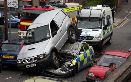All police vehicles involved in a car chase will end up crashing into either each other, or civilian vehicles, and at least one will end up on its roof.