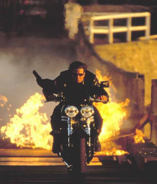 All motorcycles ridden by the hero will morph from a race replica during the highway chase scene, to dirt bike, complete with knobbly tyres, for any off-road bit of the sequence. The engine note will remain the same throughout, however, and won’t belong to either bike in any case.