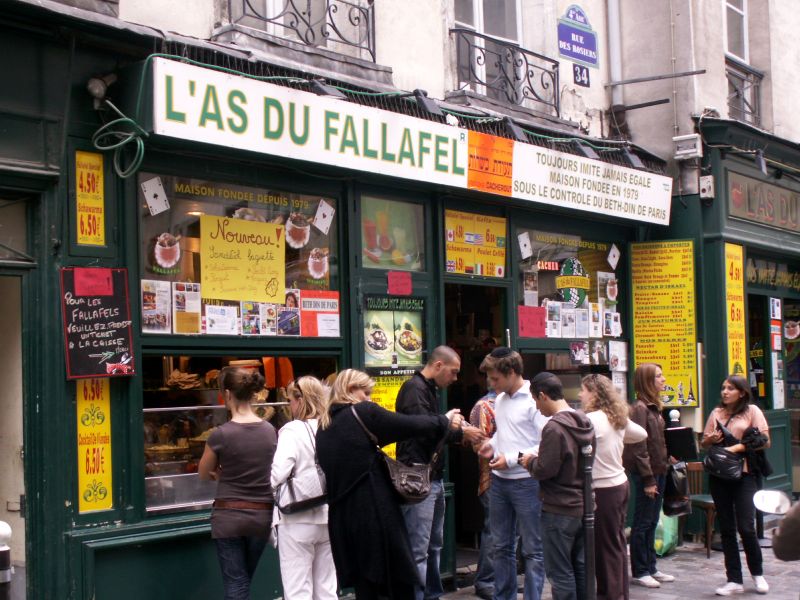 Low end is my favorite falafel on rue des Rosiers, L’as du Fallafel.