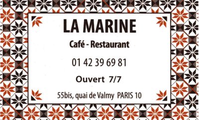La Marine–old-fashioned bistro on quai Valmy in the 10th with a bobo hipster crowd–borders the Canal Saint Martin, serves locals too and stays reasonable. Consistently delicious.