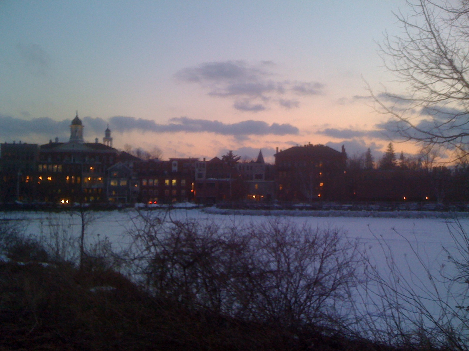Like to watch the sun set over the frozen waters of the mighty Squamscott, very happy that they will light up those cupolas for the long dark night ahead.