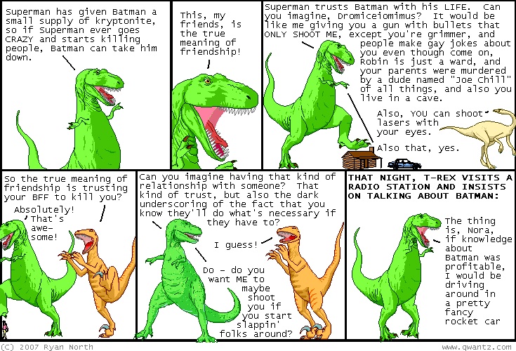 As far as web toons, may I recommend Axe Cop? http://axecop.com/ Story conceived by a five-year-old, brought to life by his cartoonist brother.