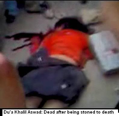“13-year old Aisha Ibrahim Duhulow was stoned to death in Somalia by insurgents because she was raped. Reports indicate that she was raped by three men while traveling by foot to visit her grandmother in Mogadishu. When she went to the authorities to report the crime, they accused her of adultery and sentenced her to death. Aisha was forced into a hole in a stadium of 1,000 onlookers as 50 men buried her up to the neck and cast stones at her until she died. A witness who spoke to the BBC’s Today programme said she had been crying and had to be forced into a hole before the stoning, reported to have taken place in a football stadium. … She said: ‘I’m not going, I’m not going. Don’t kill me, don’t kill me.’ A few minutes later more than 50 men tried to stone her. The witness said people crowding round to see the execution said it was ‘awful.'”
