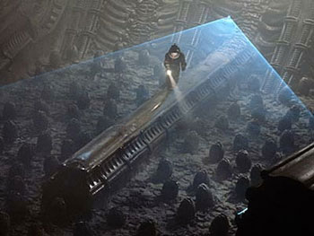 Check. Overly-curious crew member gets a space-helmet facial from an Alien in a chamber full of creepy egg pods?