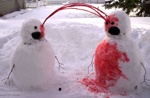 I am a big proponent for playing in the snow and snow structures. Always fun. Although the bleeding snowman is a little unsettling, it seems appropriate for the whole crime thing.