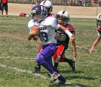 This weekend has been a busy weekend in the Brennan house. I’ve had this Colorado conference on the calendar for nearly a year. Then after school starts, I learn that my oldest has a volleyball tournament in San Diego (and yes, she arrived on Thursday in the midst of the power outage!); my #2 daughter has a cross country retreat in Lake Tahoe; my sons have an away football game; and my youngest daughter has her first soccer game. Fortunately, my mom was able to take care of the soccer game (yeah, grandma!) so my husband could take the boys to the football game. Soccer game: Victory! 7-1. Mighty Mites (6-8 year olds) football game: Victory! Come from behind to win 13-12. Jr. Pee Wees (8-10 yrs): They lost BUT my son, #49, caught his first pass in a game. A 20 yard throw, and he ran an additional five yards before being tackled. I’m sorry I missed the catch (but not sorry I missed him being tackled!)