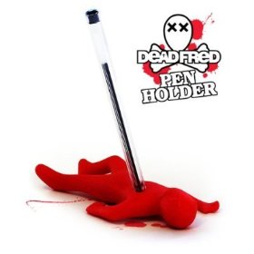 From SUCK UK comes Dead Fred: the pen holder.  When those last few revisions or copyedits are made, take out your frustrations by plunging your favorte writing instrument into the heart (or other organs) of this little man made of “silicon rubber”. Pretend he’s that guy who wrote the nasty one-star Amazon review!  From the people who brought you Splat Stan!
