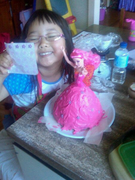 Okay, remembering my daughter and her friends (and the tendency for drama) at age five, I can't help but wonder — how did the kids react when you cut into the cake and they saw Fairy Barbie had her legs chopped off at the knee? I'm sure it's very bad of me to think that must have been hysterical.