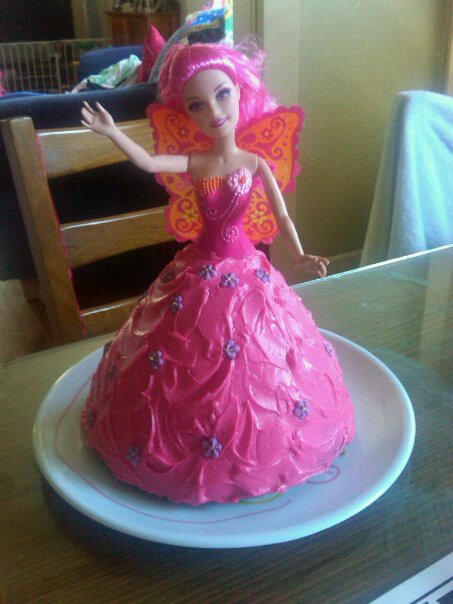 Barbie – glad you like the look of the cake and thanks for your birthday wishes for my daughter! I have seen this cake decorated using pink icing and marshmallows stuck into it (half marshmallows, I think) and you can also get ice cream Princess cakes! Start Googling πŸ™‚ Although, if your sister is only 4 months old you've got a little while until she'll appreciate it.