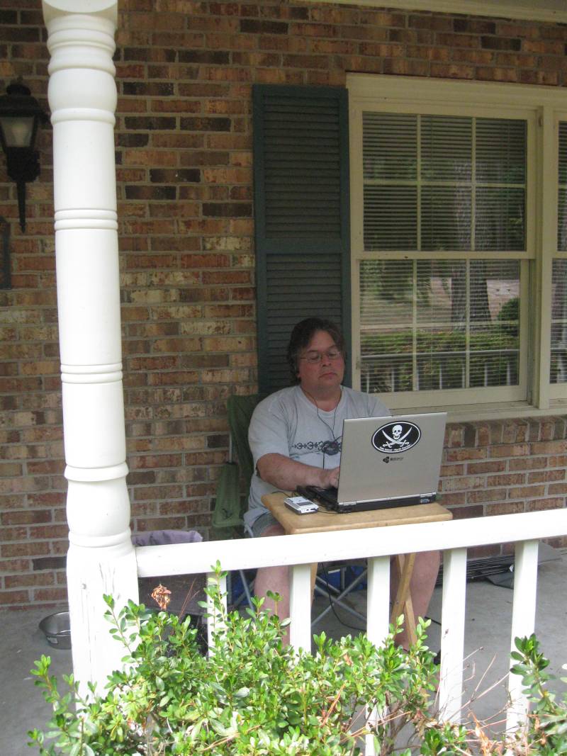 Only problem is, when it rains, or it’s really hot, or really buggy (and in North Carolina in the summer it’s liable to be at least two of those things) it’s hell to try to write outdoors.