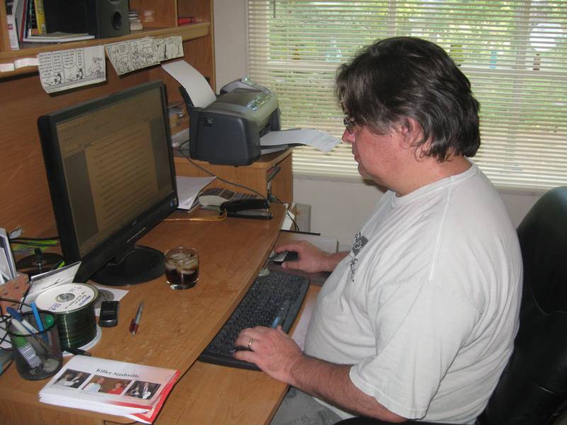 I have an enormous office in the basement of our house, which is where about 98% of my writing gets done. I also have a laptop and on weekends and sometimes in the evenings I'll use it sprawled out on a couch.