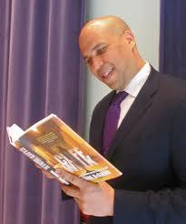 (Newark Mayor Corey Booker engrossed by Bruce’s prose)