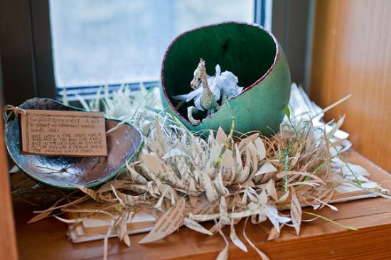 I won’t paraphrase the good articles I’ve read about this; they’ve already done a lovely job describing the artwork, the librarians’ reactions, and the deepining mystery behind the gifts. Take a look at this write up from a blogger at Central Station, for the whole story, and lots more great photos.