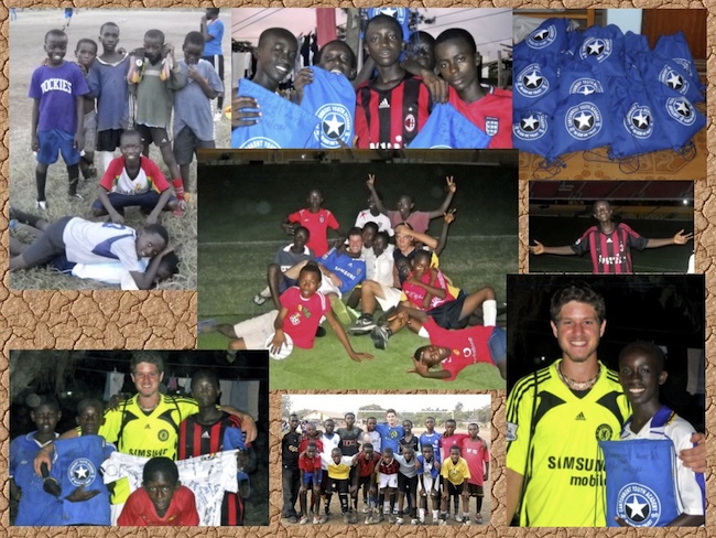 The next day was my last in Ghana. Half way through the under 12’s training session, I rounded all the kids up, and told them to follow me. Ramma came with us as well.  We got to the equipment closet where I was hiding their bags of gear, and I turned the kids and said, “As you guys know I’m leaving tomorrow.  But I have a surprise for you all.  There are a lot of generous people back home that gave me donations for you and with that I was able to get you all some gear.  Some things that will make you look more like a team.”  I pulled out the first bag and tossed it to one of the children.  He caught it with a look of astonishment on his little face, and realizing what it was, let out a shriek of joy.  I grabbed another bag, and threw it out to the group of now jumping, excited children.  Then another, and another until all the children had one.  It was joyful chaos as all of them rifled through their bags pulling out a jersey here, and a pair of socks there, some shorts waved in the air.  All of them were smiling, and cheering the whole time – happy for themselves and happy for one another.  One young boy came close and said a quiet thank you to me, and through teary eyes, I told him he was very welcome.  Ramma turned to me and said, “In all of my years working with this team, and seeing volunteers come and go – I have never seen so much generosity towards the children.  I can’t find the words to describe how happy I am right now.”  He reached out, gave me a hug and said, “Thank you. Thank you so much. Thank you.”  I said, “Rama I can never give these kids what you have given them.  I gave them a jersey and shorts, you gave them food.  I gave them a bag with socks, you gave them a home.  I should be the one thanking you.”  He gave me another hug, and said, “I’m going to really miss you Tony, and I know that the kids will too.  You will never be forgotten.”  And with that, I picked up my bag, and walked away.  Tears rolling down my face, I looked back, to see all the kids waving good-bye.  I gave one final wave, then turned back around and headed for a plane that would take me home to New Hampshire.  Never to forget the little faces, the friends, the memories. I will never forget your generosity and neither will the young lives that you have touched.  Thank you.
