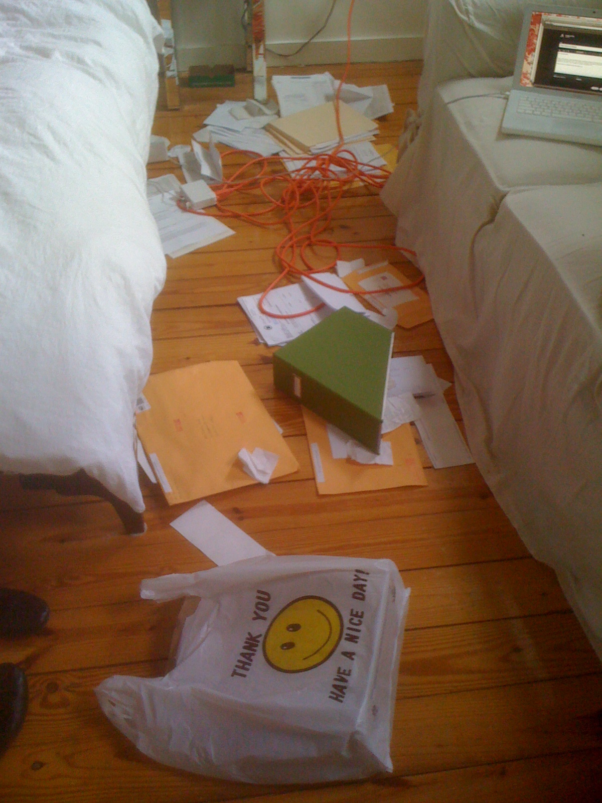 Did I mention what my bedroom still looks like, since I finished the taxes and everything at the very last minute before leaving for the airport? Here’s another shot: