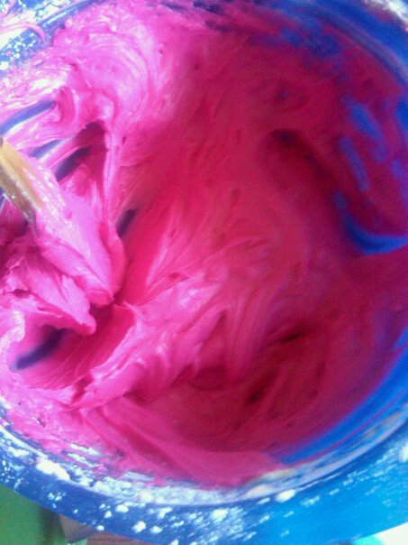 I only needed about half of this though. I've now got loads of hot pink cream cheese icing/frosting in the fridge!