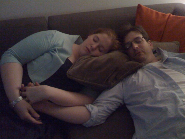 (Our Alafair also remembers them like this, crashing on her NYC couch after being stranded by bad weather on the way home from the wedding):