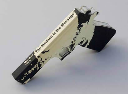 This is very interesting article.Many different concepts have been covered within.The gun as medium of message is really a great pic