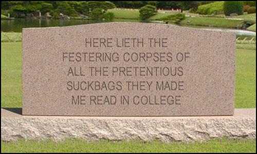 I think they’re all just pissed off because they’ve turned “literature” into the kind of Filboid-Studge Latin whose precise declensions can only be enforced with Joycean pandy-bats viciously applied to the reader’s tender palms and footsoles,