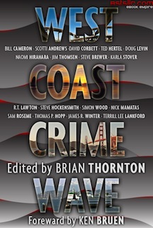It’s titled West Coast Crime Wave, and is the brainchild of publisher Michael Wolf and editor Brian Thornton, who put together an amazing collection of stories, with four Murderati connections — stories by me and previous Murderateros Simon Wood and Naomi Hirahara, plus an introduction from the one and only Ken Bruen, who graciously remarked: